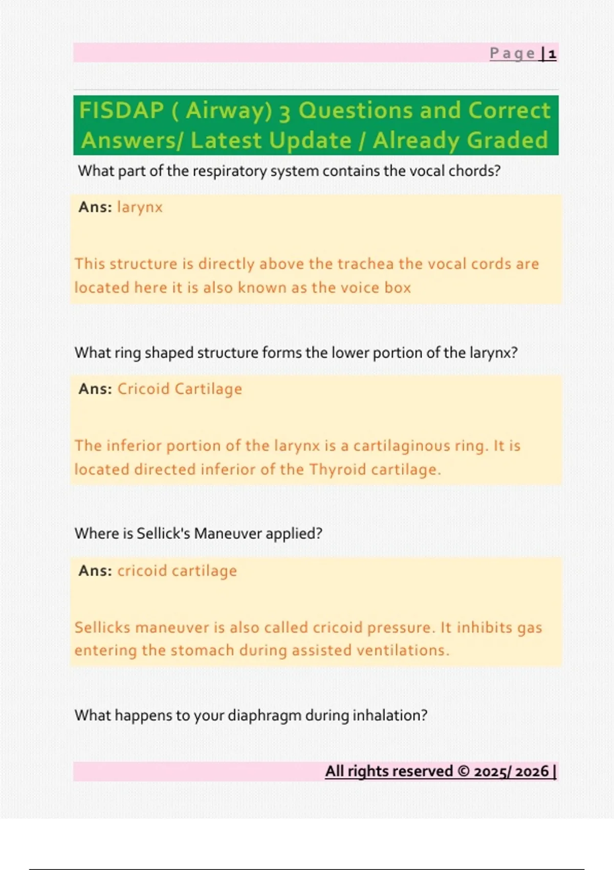 FISDAP ( Airway) 3 Questions and Correct Answers/ Latest Update / Already Graded