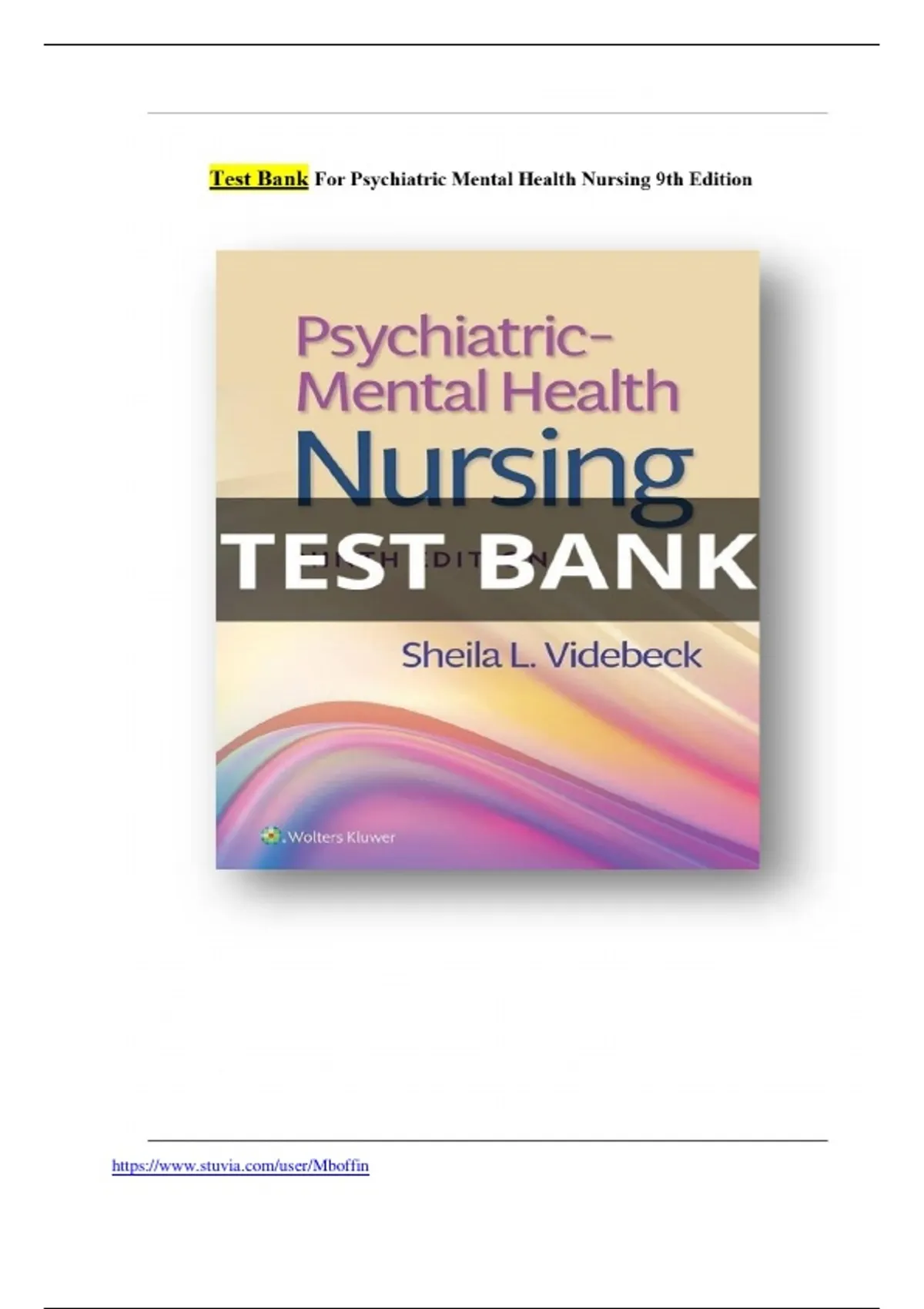 TEST BANK FOR PSYCHIATRIC MENTAL HEALTH NURSING, 9TH EDITION BY SHEILA L. VIDEBECK |VERIFIED CHAPTER'S 1 – 24 A GUIDE