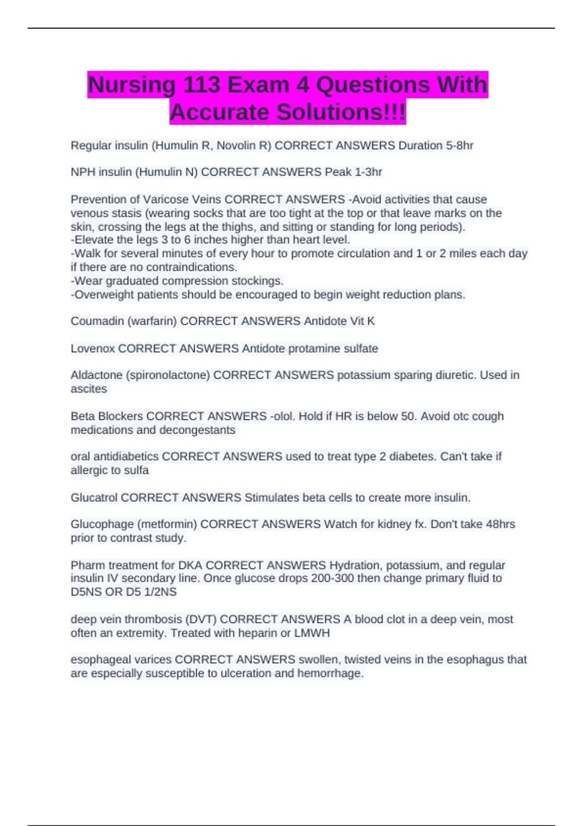 Nursing 113 Exam 4 Questions With Accurate Solutions!!!
