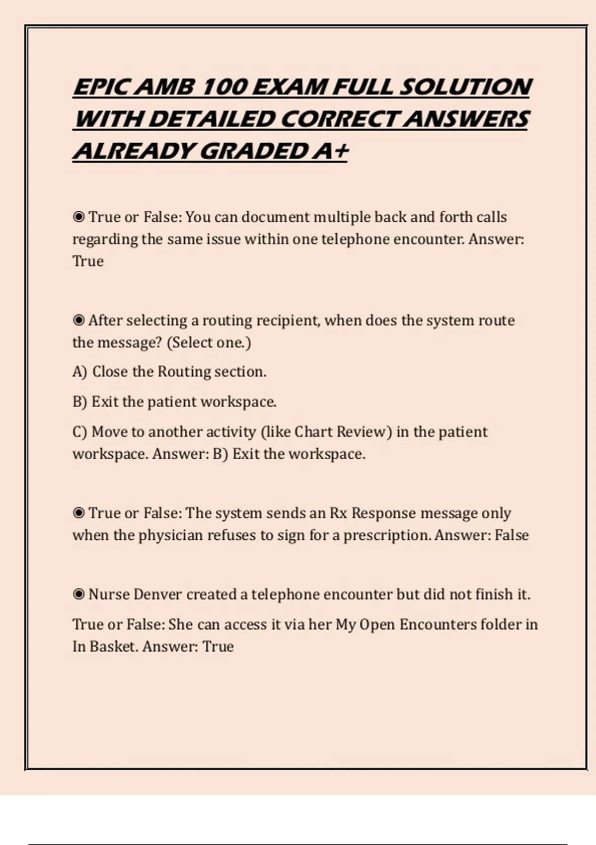EPIC AMB 100 EXAM FULL SOLUTION WITH DETAILED CORRECT ANSWERS ALREADY GRADED A+