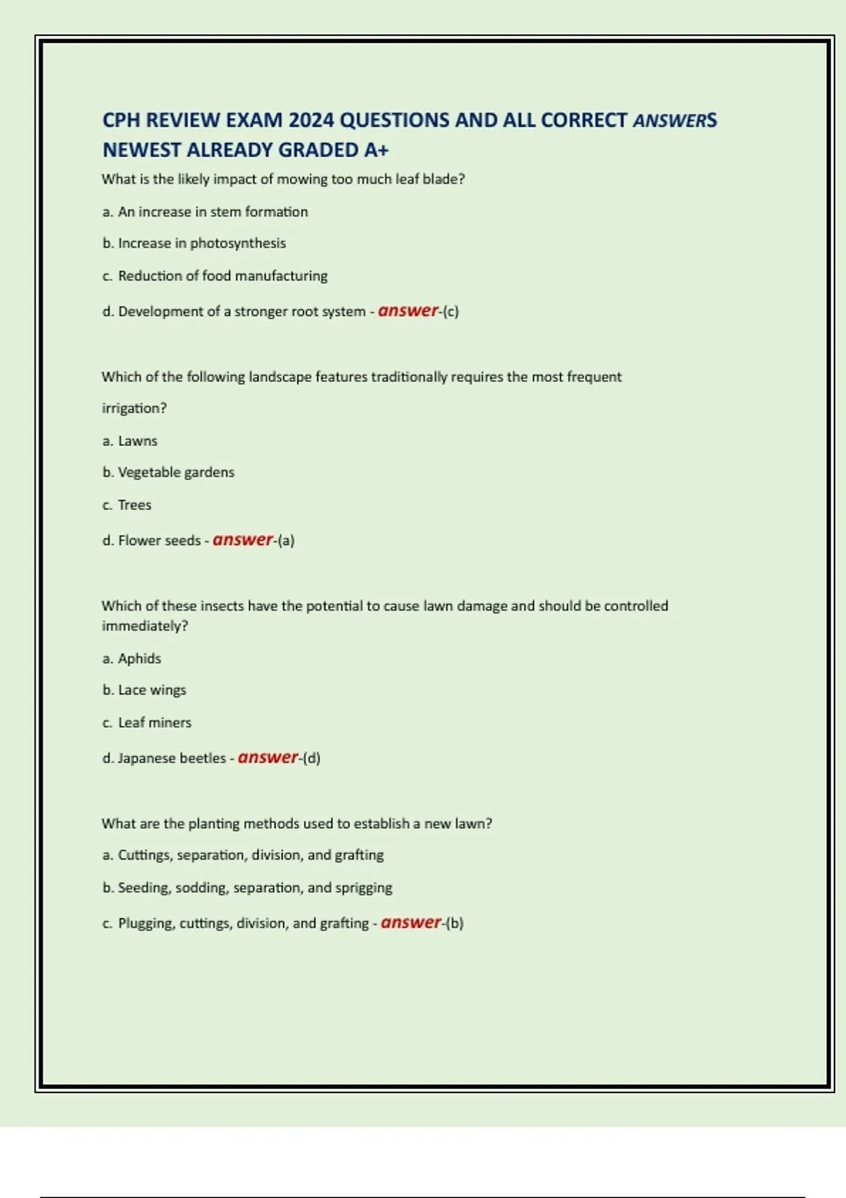 CPH REVIEW EXAM 2024 QUESTIONS AND ALL CORRECT ANSWERS