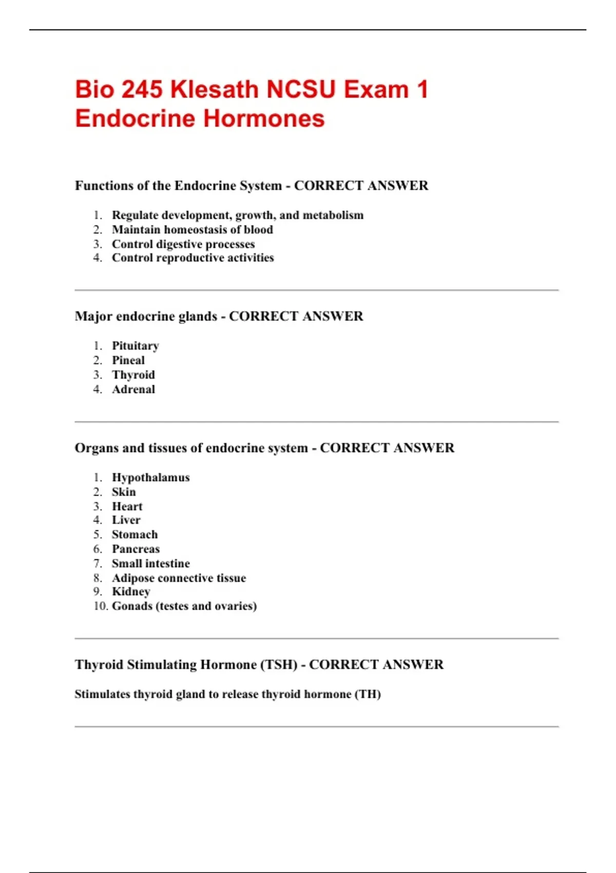 Thyroid Gland's Hormone - CORRECT ANSWER
