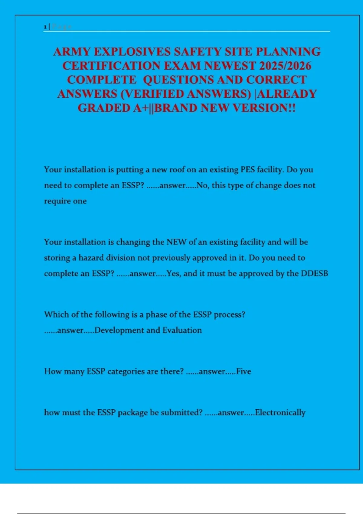 ARMY EXPLOSIVES SAFETY SITE PLANNING CERTIFICATION ACTUAL 2025/2026 QUESTIONS AND 100% CORRECT ANSWERS