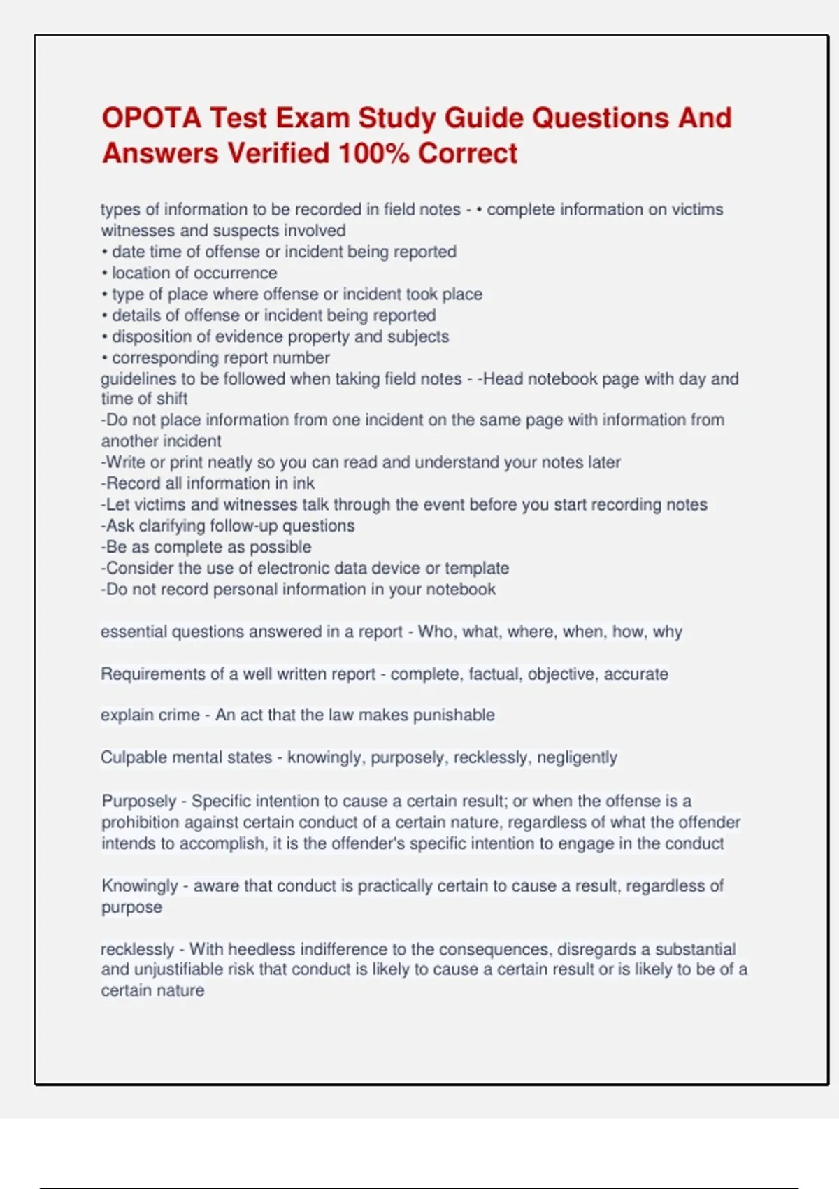 OPOTA Test Exam Study Guide Questions And Answers Verified 100% Correct