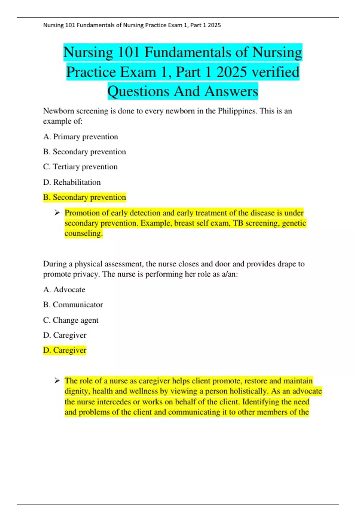 ,Nursing 101 Fundamentals of Nursing Practice Exam 1, Part 1 2025