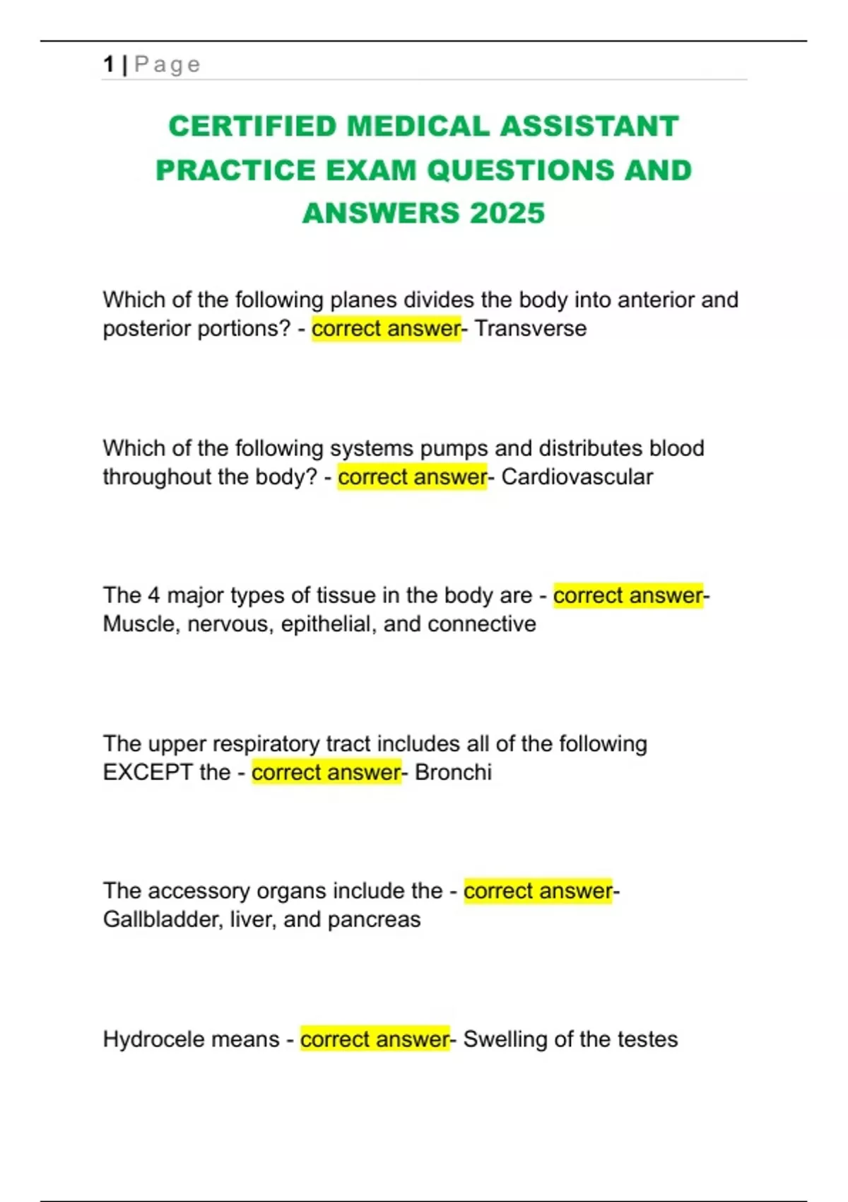 CERTIFIED MEDICAL ASSISTANT PRACTICE EXAM QUESTIONS AND ANSWERS 2025