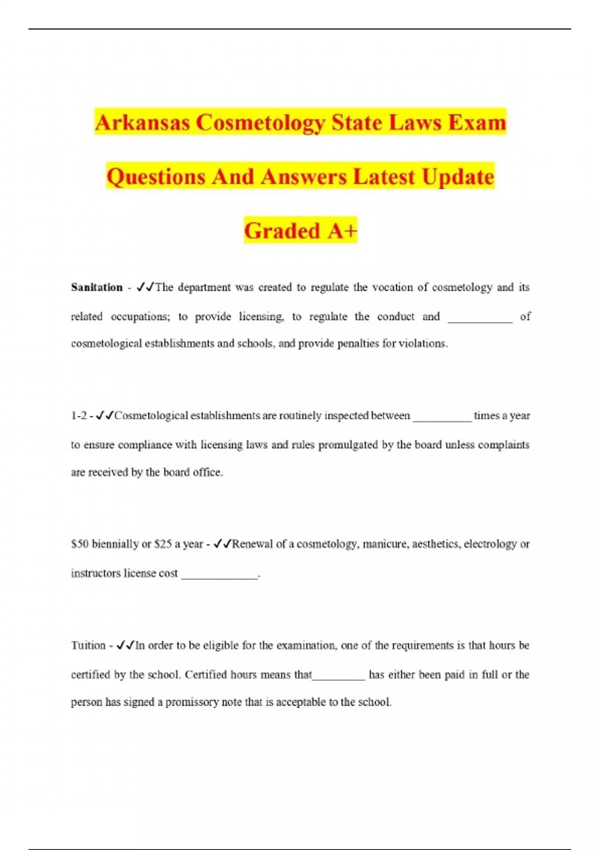 Arkansas Cosmetology State Laws Exam Questions And Answers Latest Update Graded A+