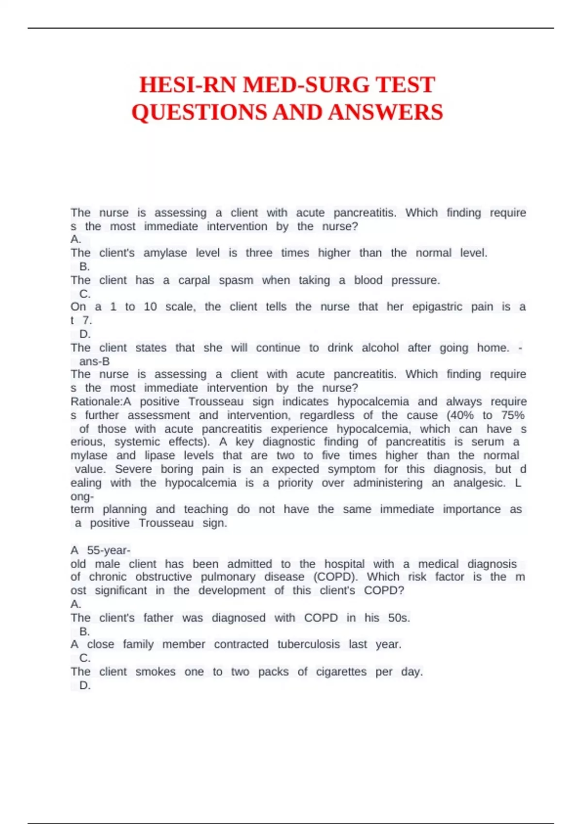 HESI-RN MED-SURG TEST QUESTIONS AND ANSWERS