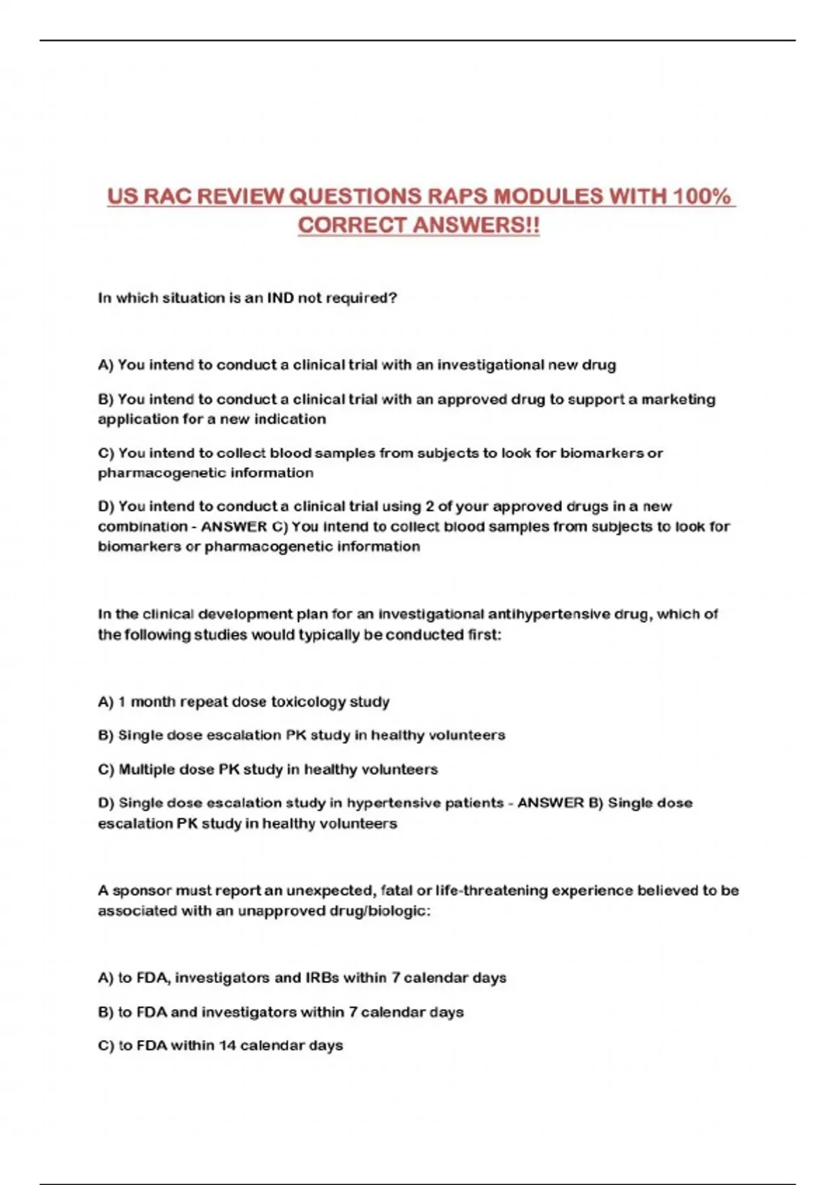 US RAC REVIEW QUESTIONS RAPS MODULES WITH 100% CORRECT ANSWERS!!...
