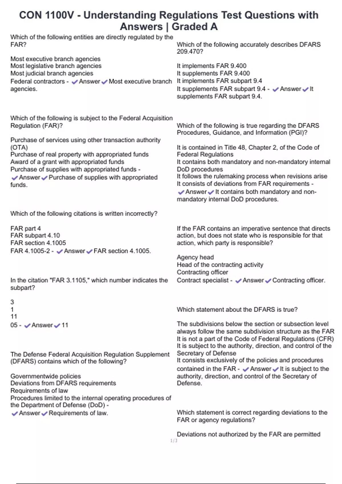 CON 1100V - Understanding Regulations Test Questions with Answers | Graded A