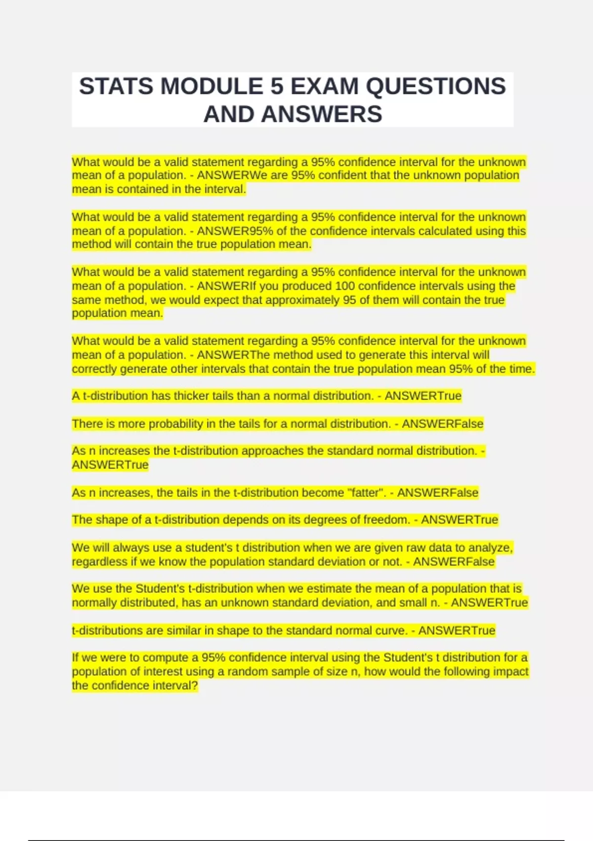 STATS MODULE 5 EXAM QUESTIONS AND ANSWERS