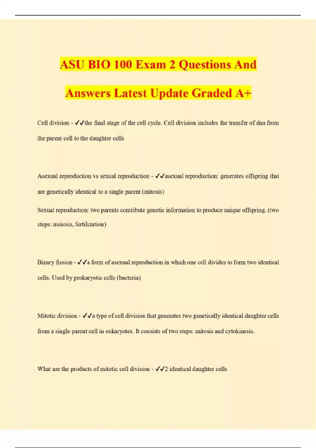 ASU BIO 100 Exam 2 Questions And Answers Latest Update Graded A+