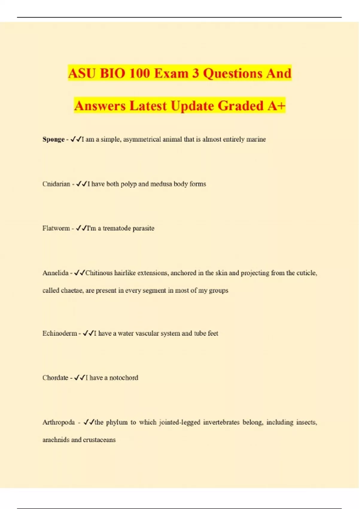 ASU BIO 100 Exam 3 Questions And Answers Latest Update Graded A+