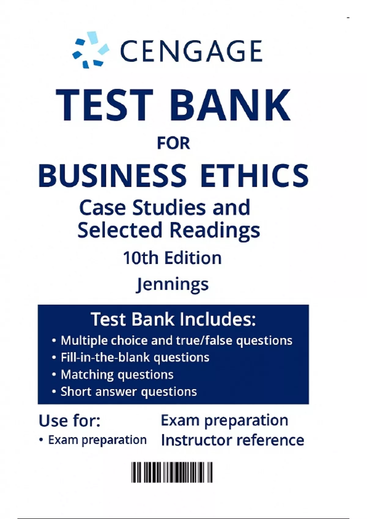Test Bank for Business Ethics: Case Studies and Selected Readings, 10th Edition by Jennings