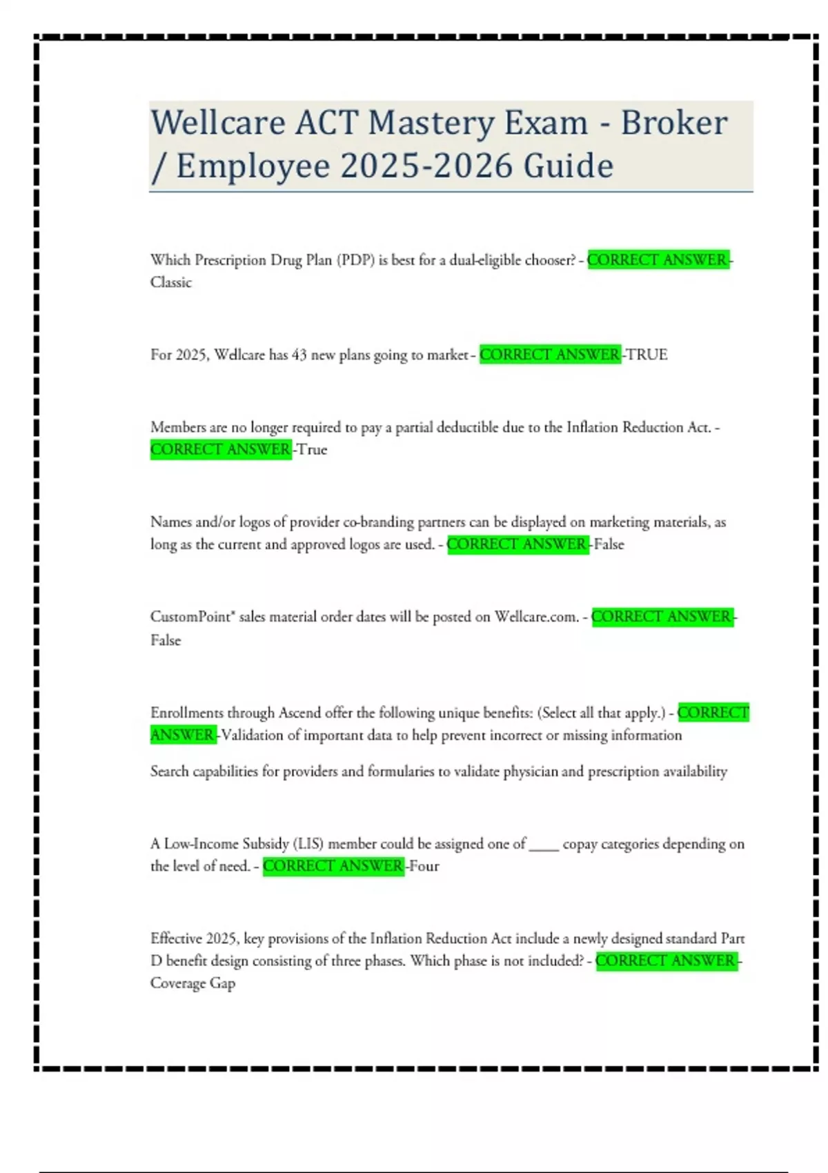 Wellcare ACT Mastery Exam - Broker / Employee Guide