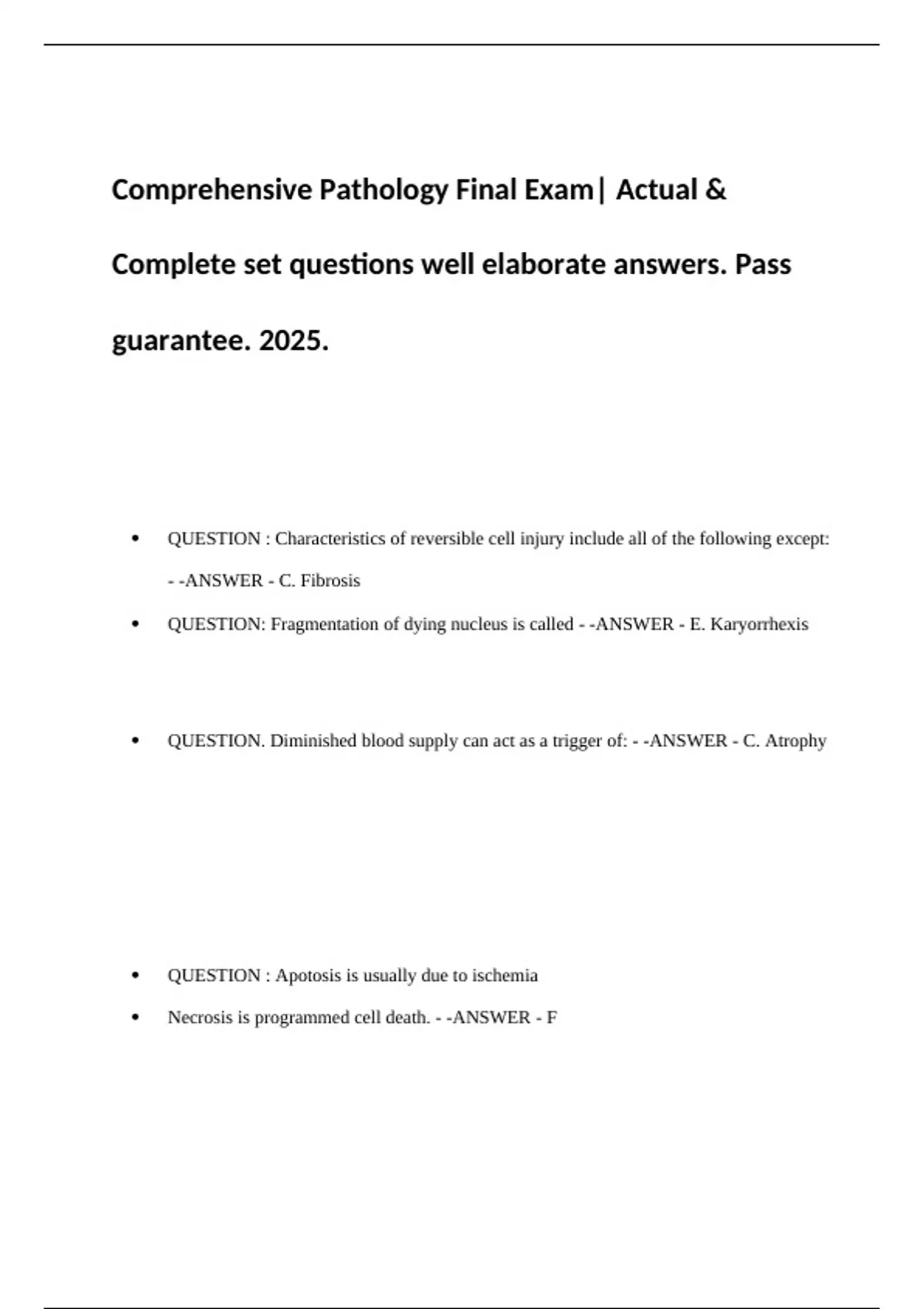 Comprehensive Pathology Final Exam| Actual & Complete set questions well elaborate answers. Pass guarantee. 2025 Comprehensive Pathology Final Exam| Actual & Complete set questions well elaborate answers. Pass guarantee. 2025 Comprehensive Pathology Final Exam| Actual & Complete set questions well elaborate answers. Pass guarantee. 2025 Comprehensive Pathology Final Exam| Actual & Complete set questions well elaborate answers. Pass guarantee. 2025 Comprehensive Pathology Final Exam| Actual & Complete set questions well elaborate answers. Pass guarantee. 2025 Comprehensive Pathology Final Exam| Actual & Complete set questions well elaborate answers. Pass guarantee. 2025