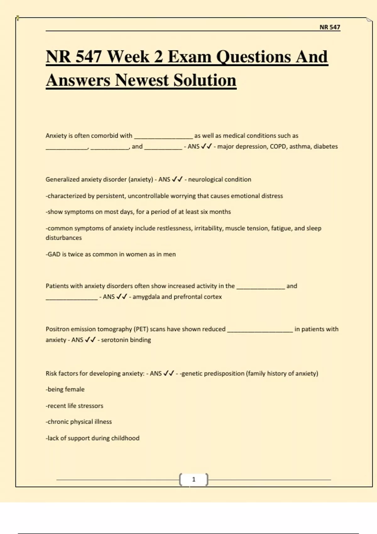 Anxiety Disorders - ANS ✔✔ - Generalized Anxiety Disorder (GAD)
