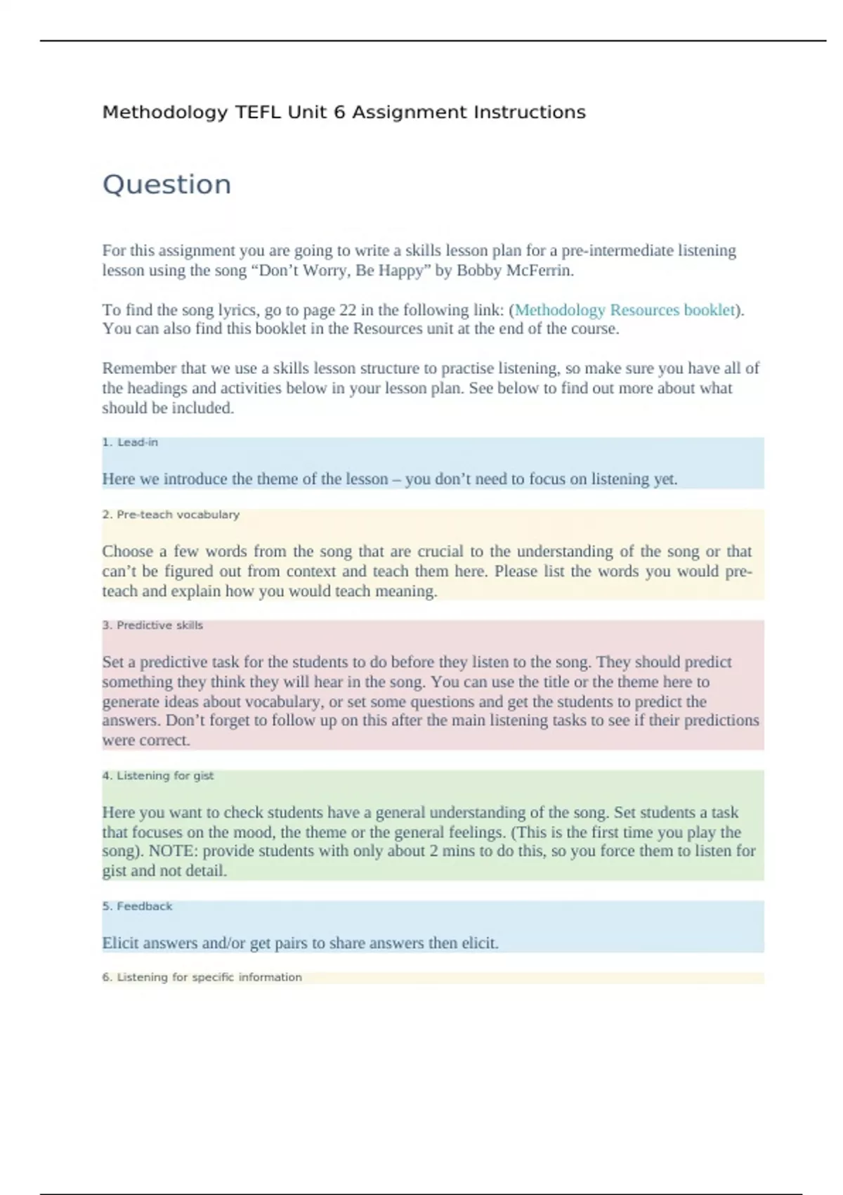 For this assignment you are going to write a skills lesson plan for a pre-intermediate listening