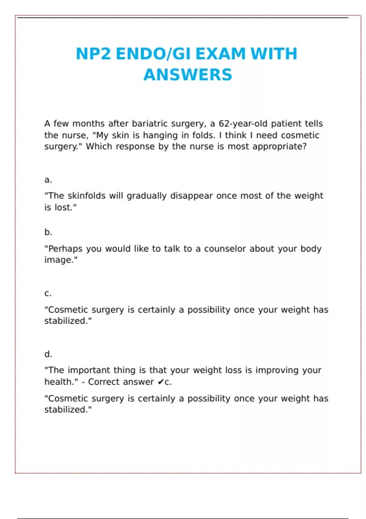 the nurse, "My skin is hanging in folds. I think I need cosmetic