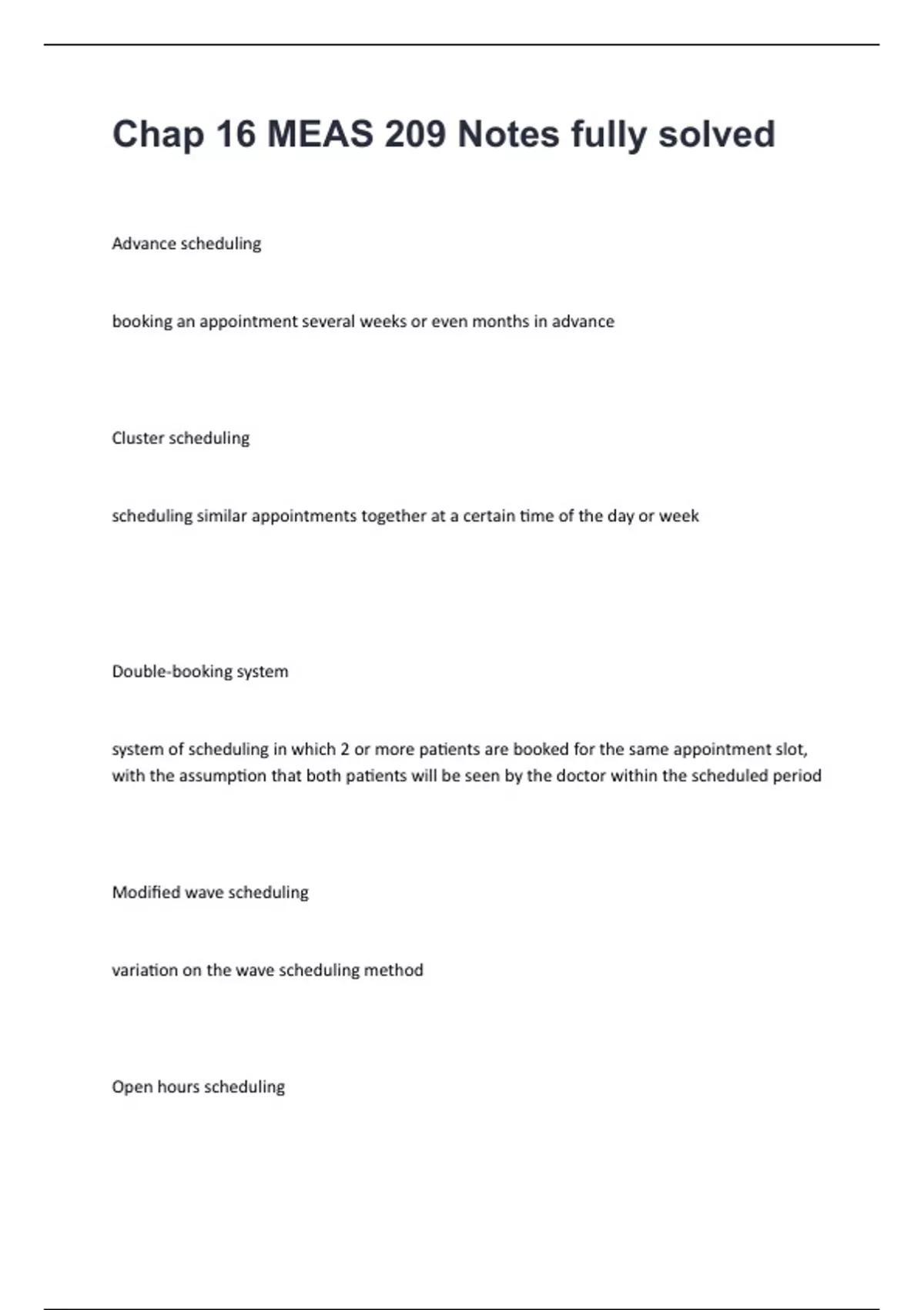 ,scheduling in which patients arrive at the doctor's office at their convenience and are seen on a