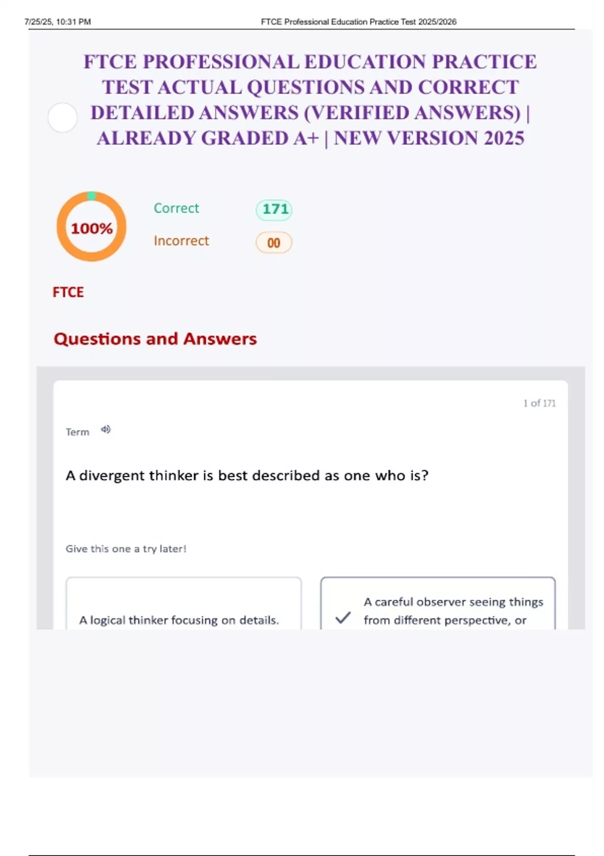 , 7/25/25, 10:31 PM FTCE Professional Education Practice Test 2025/2026