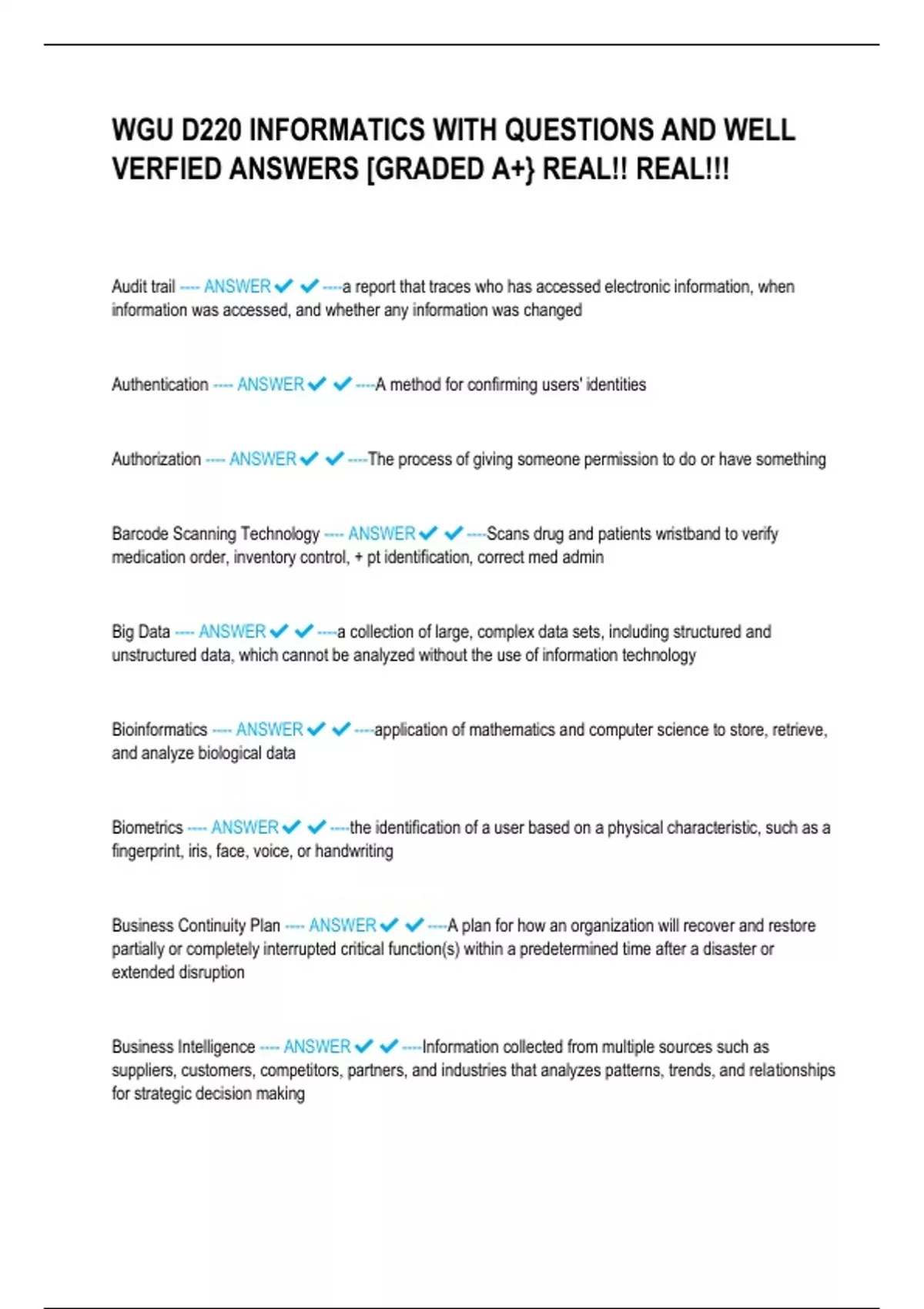 WGU D220 INFORMATICS WITH QUESTIONS AND WELL VERFIED ANSWERS [GRADED A+} REAL!! REAL!!!