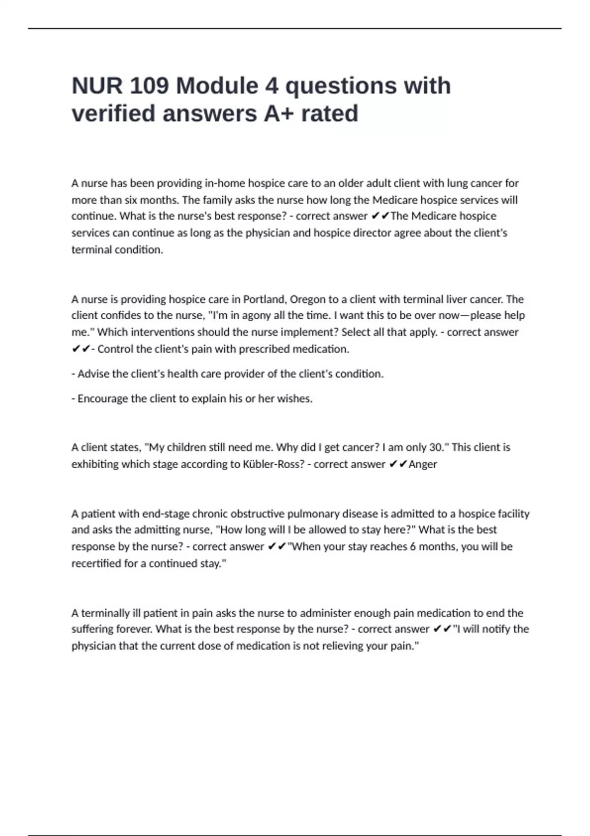 continue. What is the nurse's best response? - correct answer ✔✔The Medicare hospice