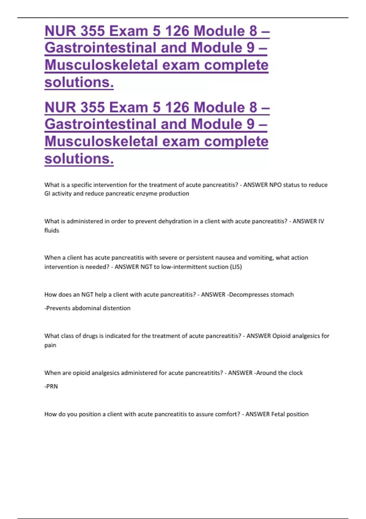 How do you position a client with acute pancreatitis to assure comfort? - ANSWER Fetal position