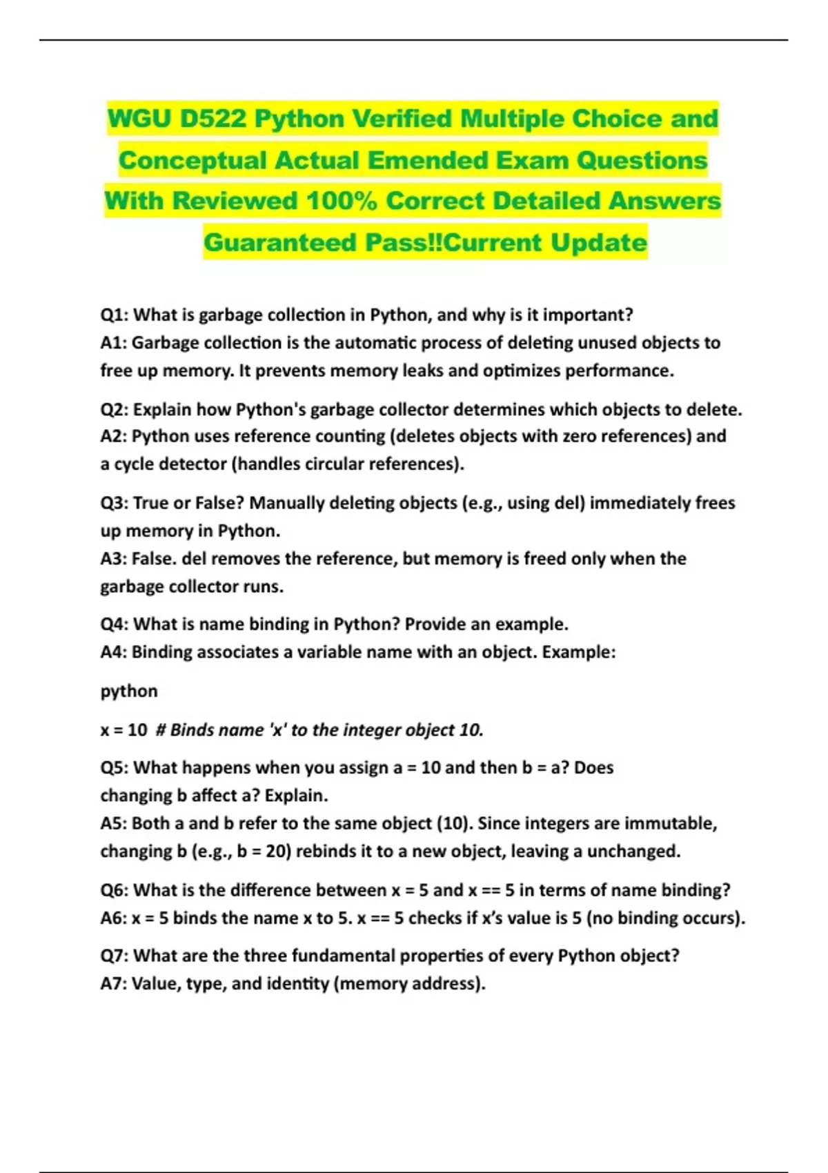 A3: False. del removes the reference, but memory is freed only when the