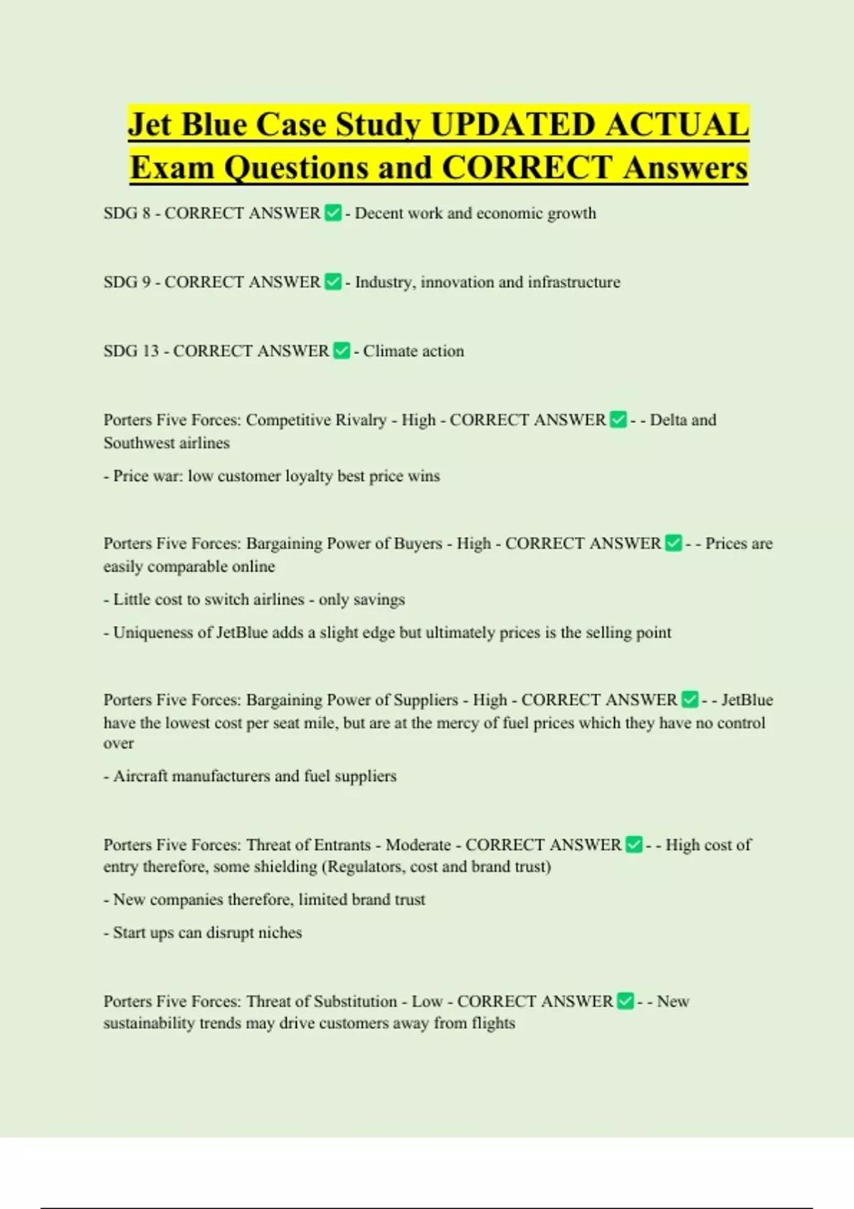 Porters Five Forces: Bargaining Power of Suppliers - High - CORRECT ANSWER - - JetBlue