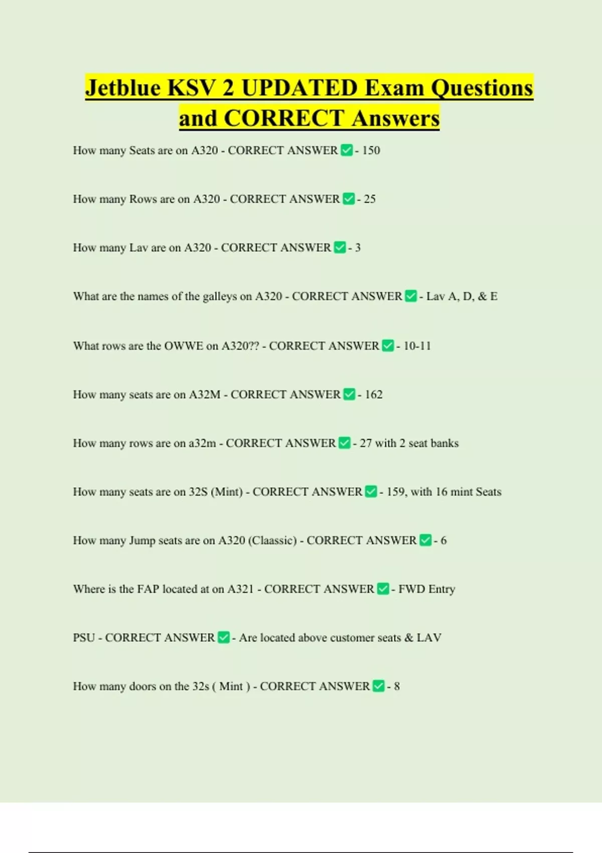 Jetblue KSV 2 UPDATED Exam Questions and CORRECT Answers