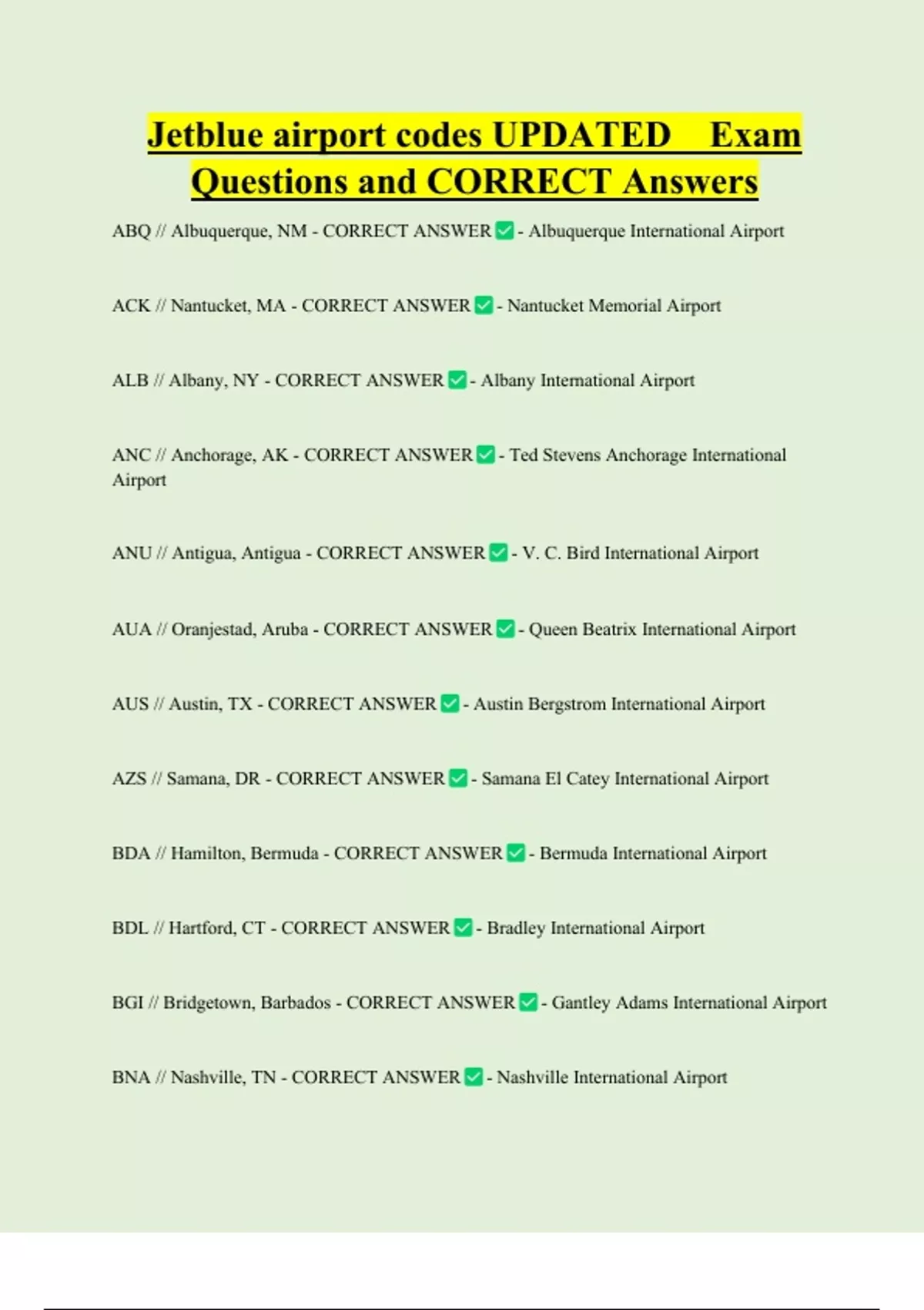 Jetblue airport codes UPDATED Exam Questions and CORRECT Answers