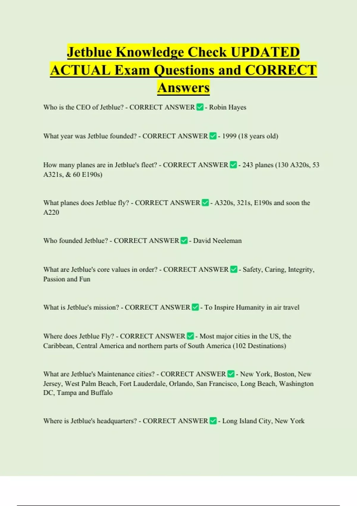 Who is the CEO of Jetblue? - CORRECT ANSWER - Robin Hayes