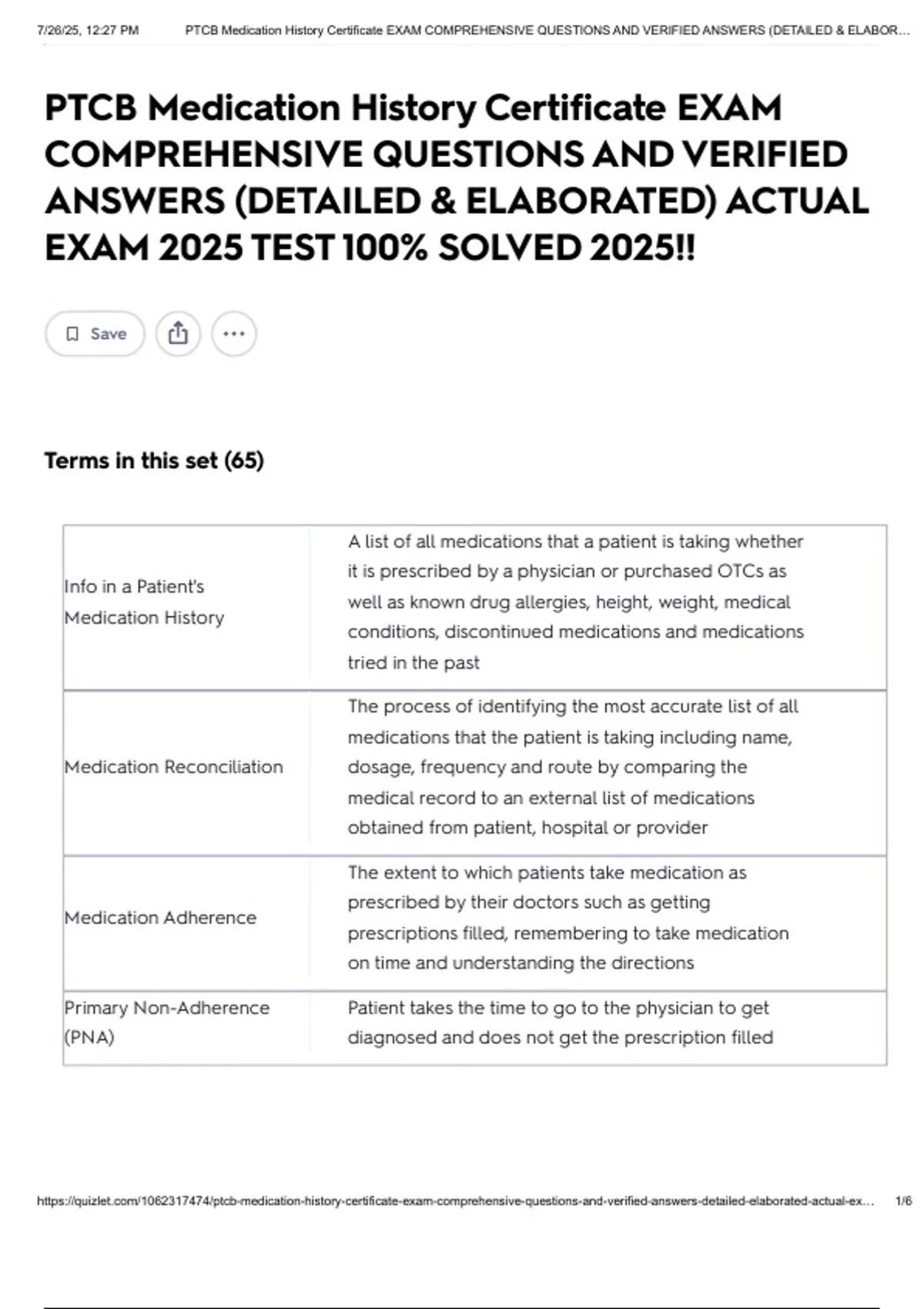 7/26/25, 12:27 PM PTCB Medication History Certificate EXAM COMPREHENSIVE QUESTIONS AND VERIFIED ANSWERS (DETAILED & ELABOR…