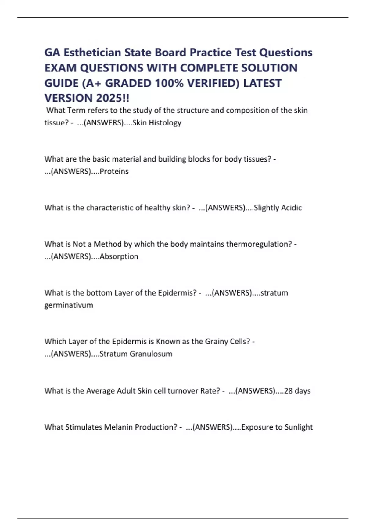 GA Esthetician State Board Practice Test Questions