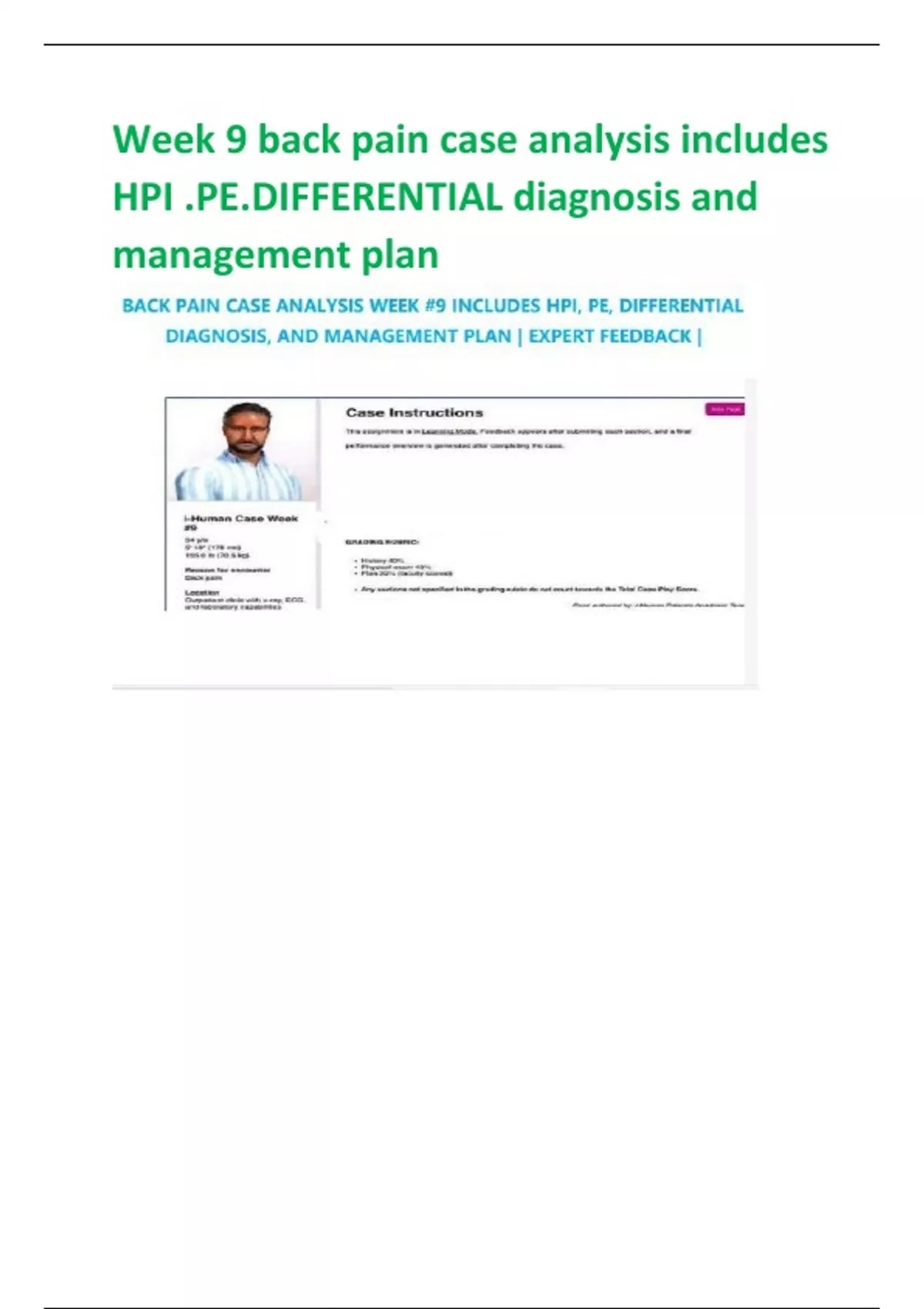 Week 9 back pain case analysis includes HPI .PE.DIFFERENTIAL diagnosis and management plan
