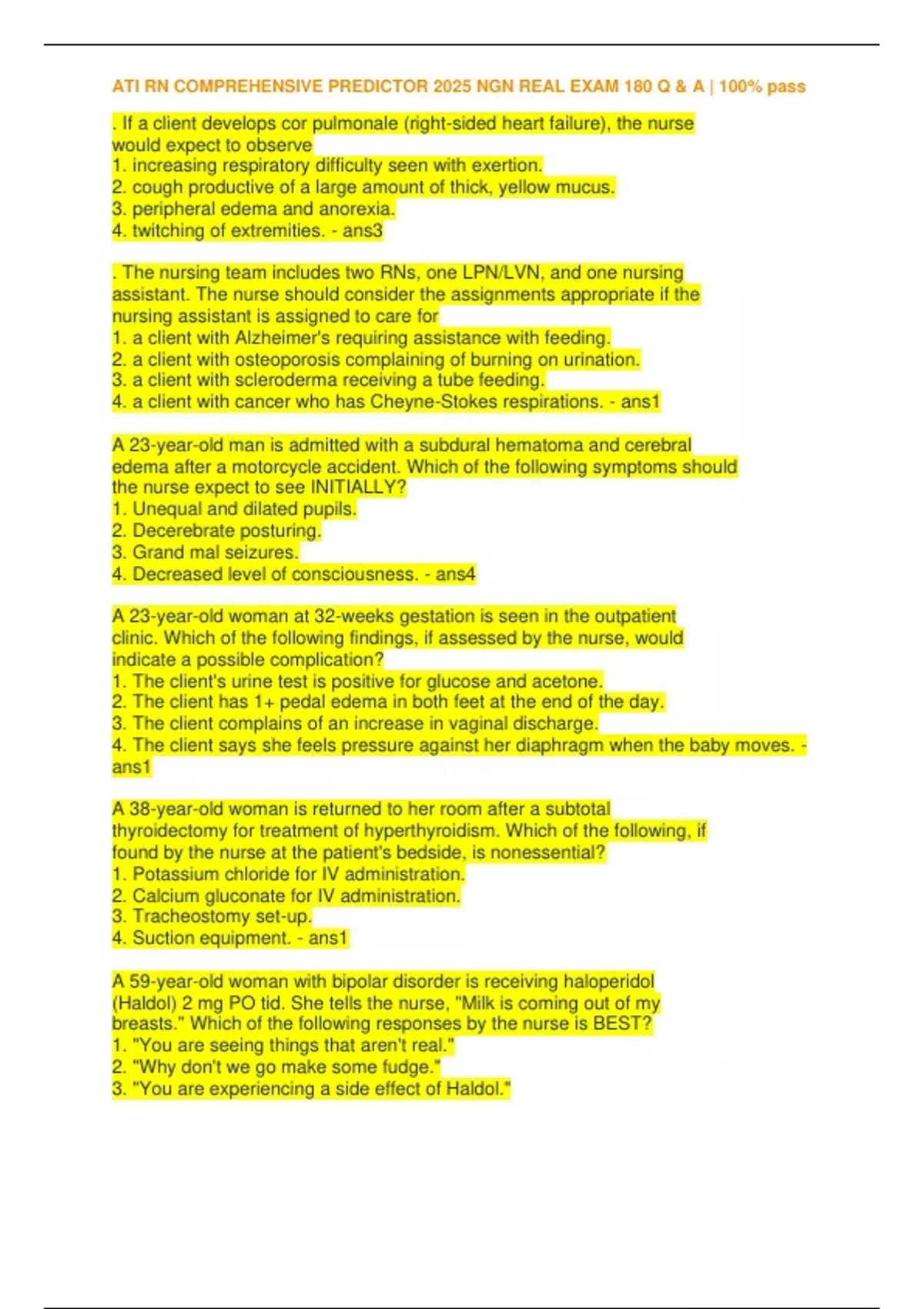 , ATI RN COMPREHENSIVE PREDICTOR 2025 NGN REAL EXAM 180 Q & A | 100% pass