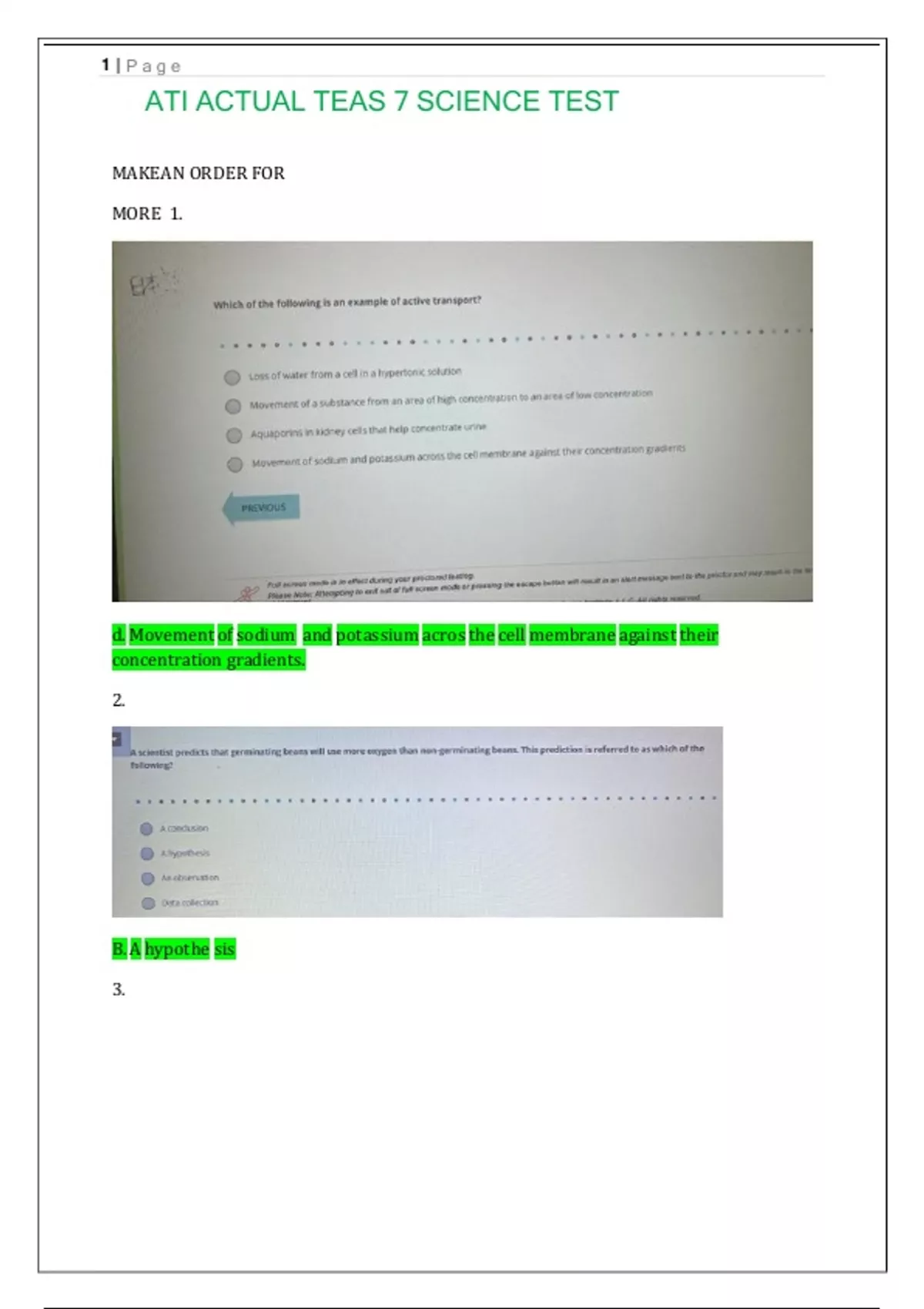 ATI ACTAL TEAS 7 SCIECE TE
