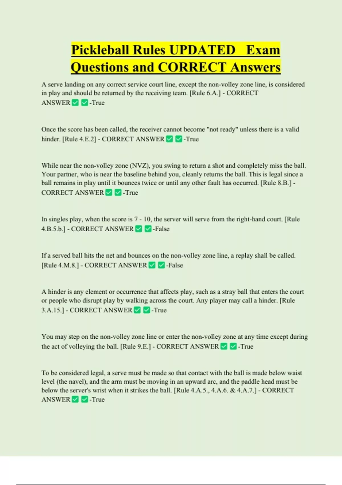 [Rule 4.M.8.] - CORRECT ANSWER -False