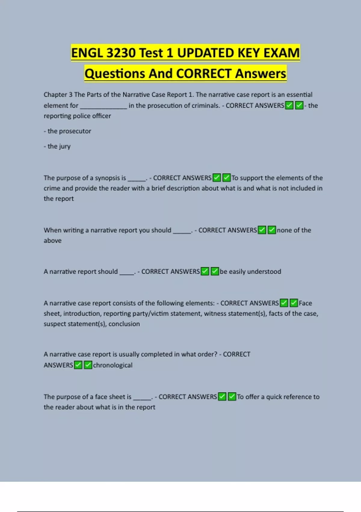 When writing a narrative report you should _____. - CORRECT ANSWERS none of the