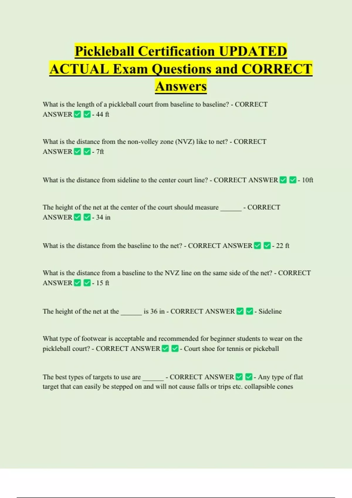 Pickleball Certification UPDATED ACTUAL Exam Questions and CORRECT Answers