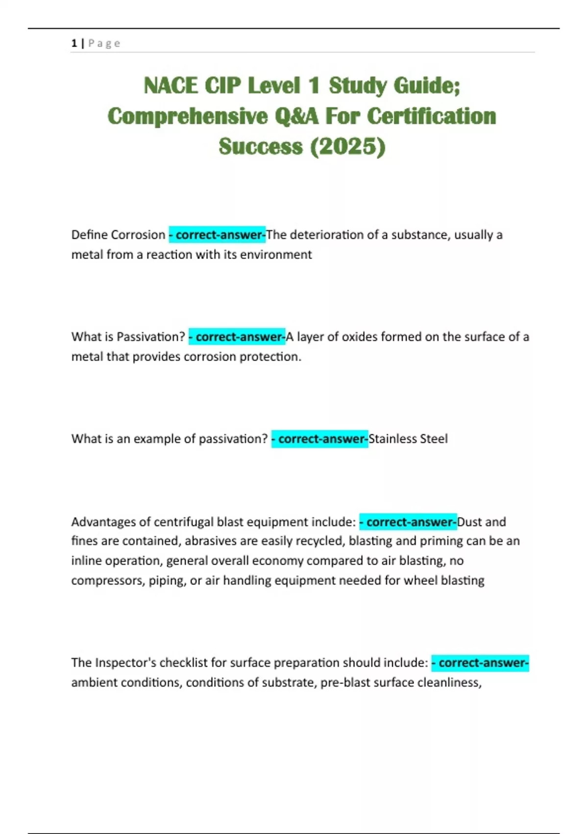 NACE CIP Level 1 Study Guide; Comprehensive Q&A For Certification Success (2025)