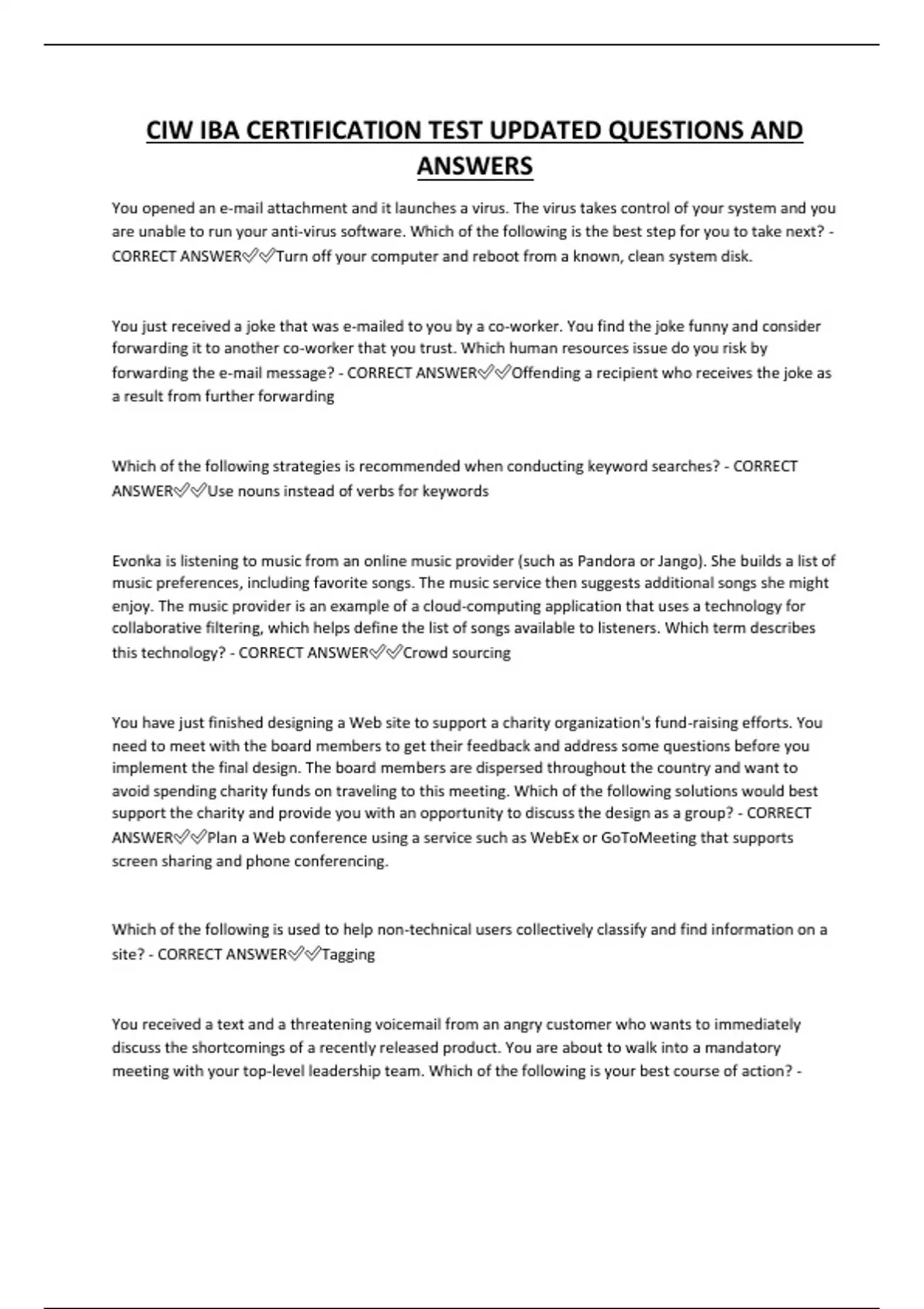 CIW IBA CERTIFICATION TEST UPDATED QUESTIONS AND ANSWERS