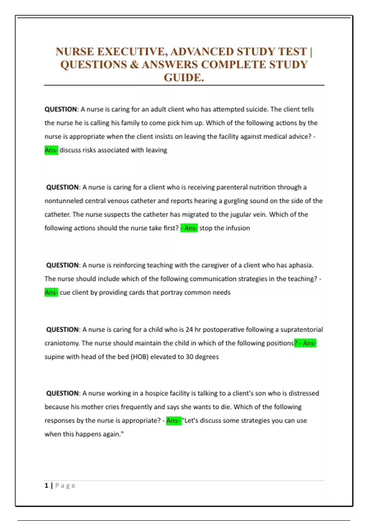 NURSE EXECUTIVE, ADVANCED STUDY TEST |