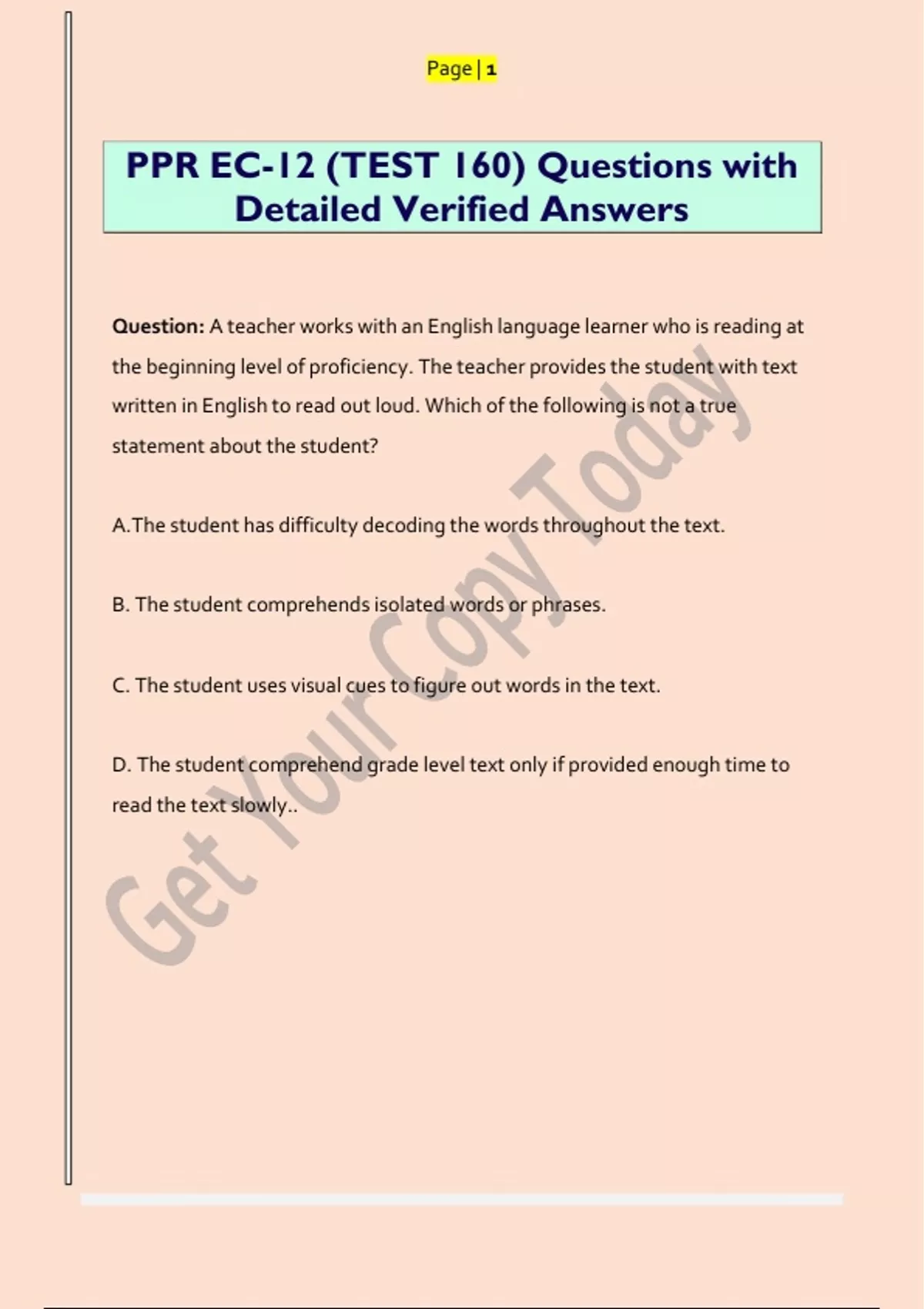 D. The student comprehend grade level text only if provided enough time to