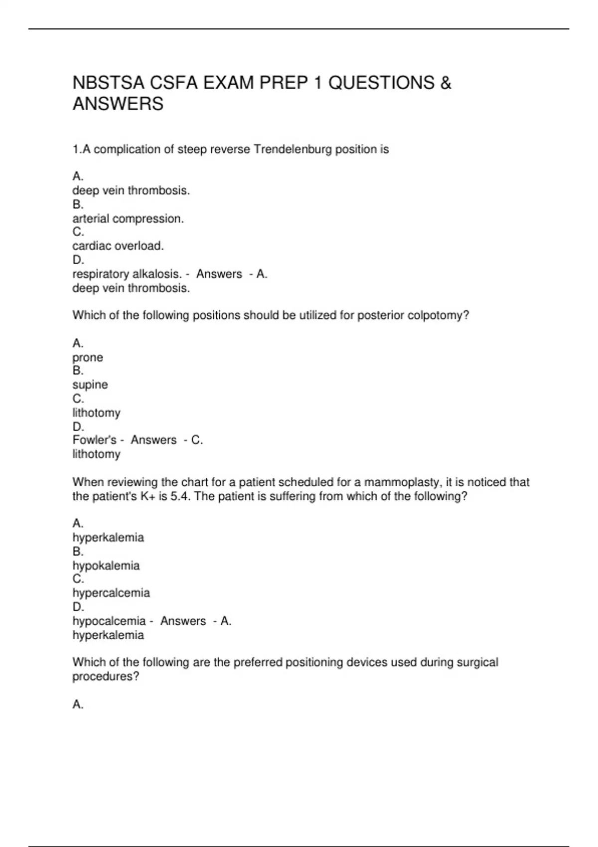 NBSTSA CSFA EXAM PREP 1 QUESTIONS & ANSWERS