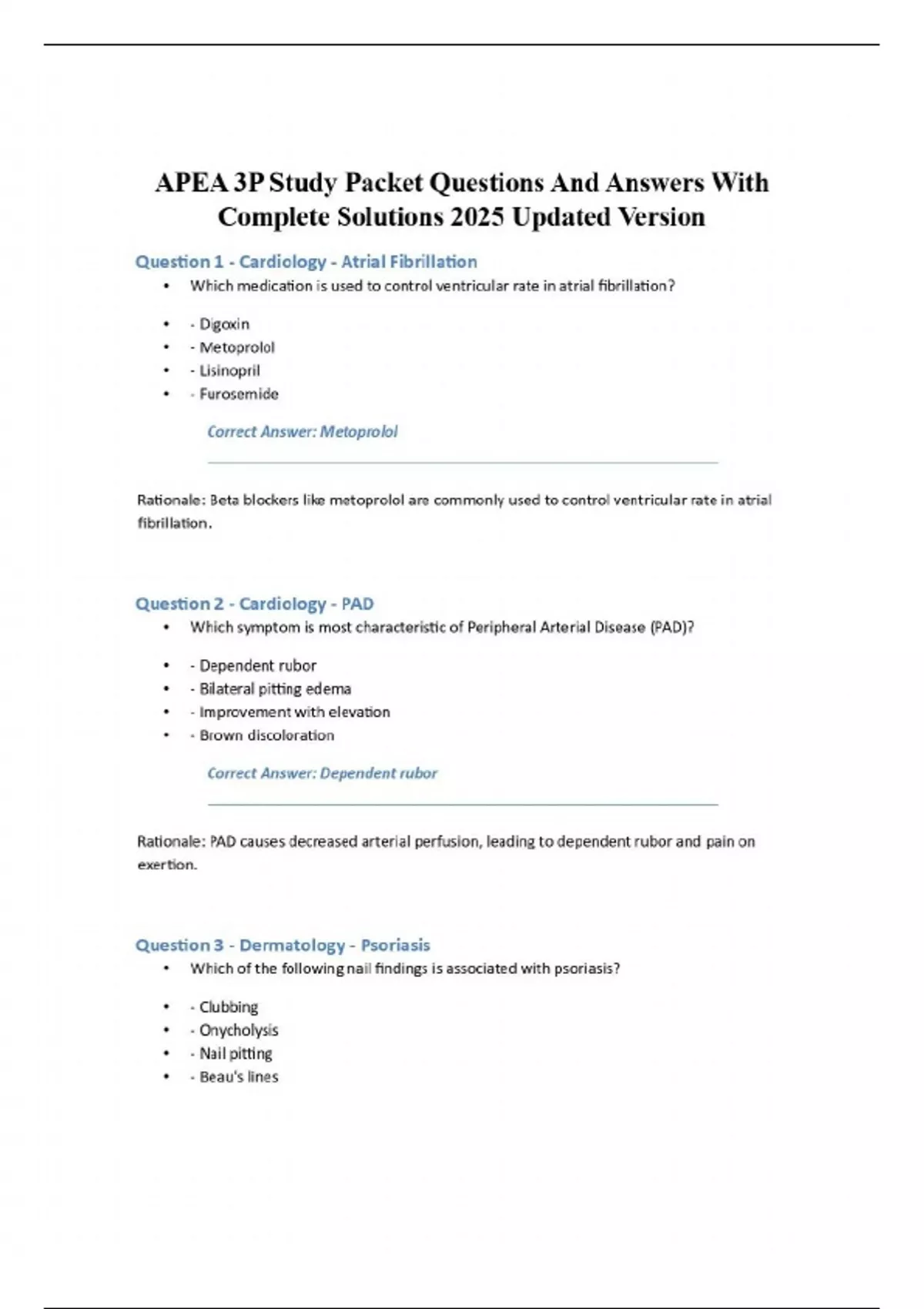 APEA 3P Study Packet Questions And Answers With Complete Solutions 2025 Updated Version