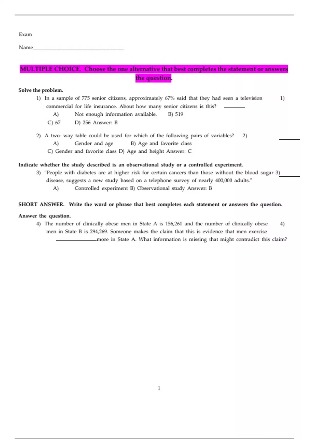 , Answer: dThis dis dan dobservational dstudy dbecause dthe ddoctor ddid dnot drandomly dassign