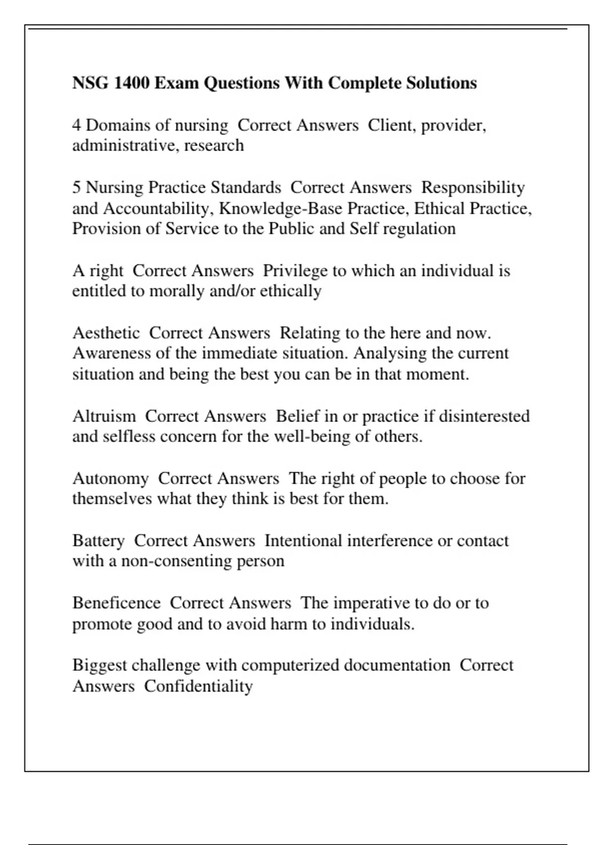 NSG 1400 Exam Questions With Complete Solutions