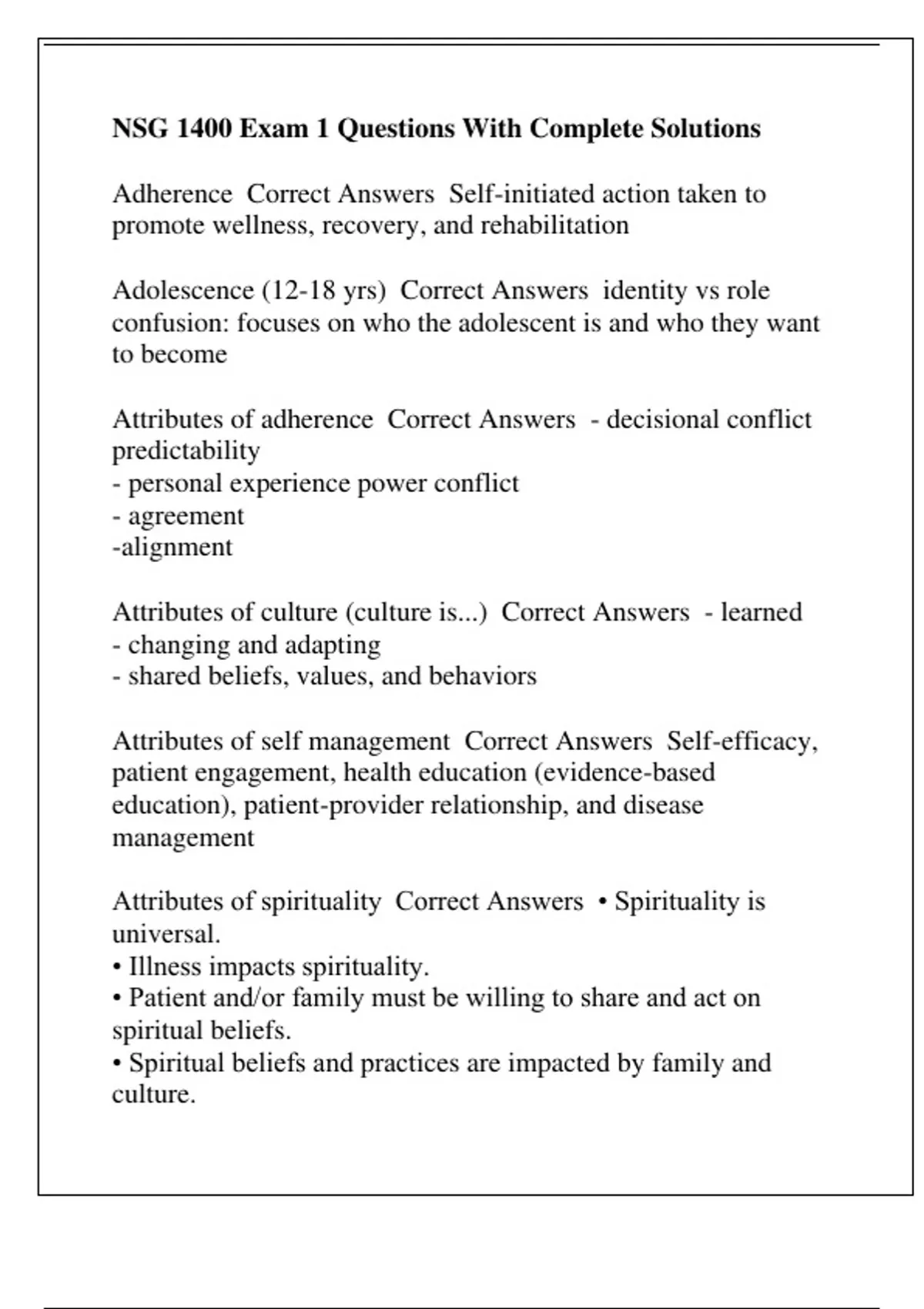NSG 1400 Exam 1 Questions With Complete Solutions